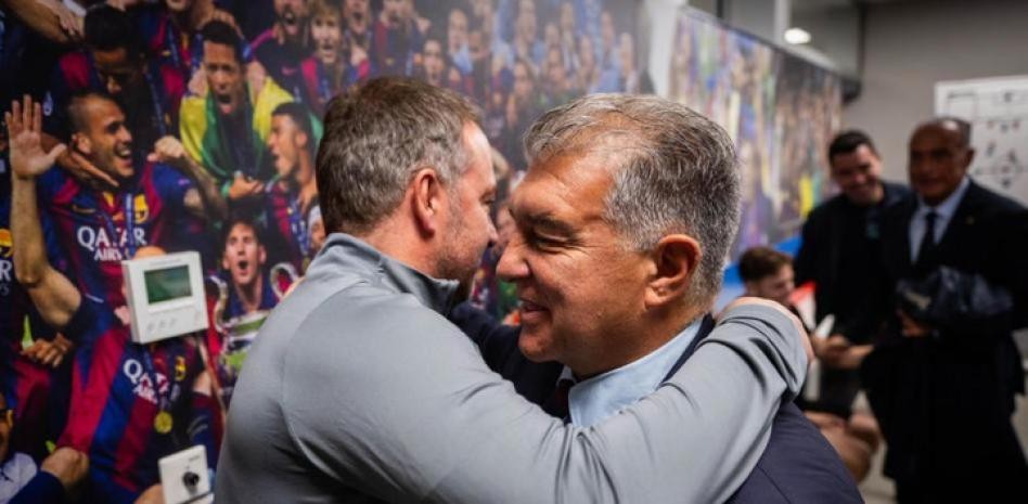 拉波尔塔今日向巴萨一线队球员告别,并亲切问候了弗里克